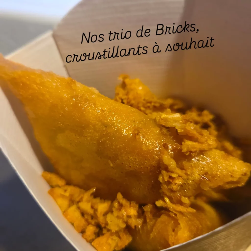 Trio de bricks farcis au bœuf oignon, paprika fumé et emmental, servis avec sauce BBQ maison